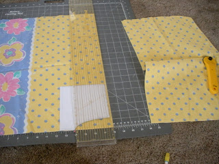 4. Cut off the top. I lined my ruler up with the top of the template and used my rotary cutter to cut the top off. You could do this with scissors too, just use diapering ink pen to mark the cut line and cut with scissors.